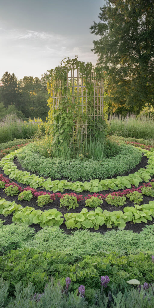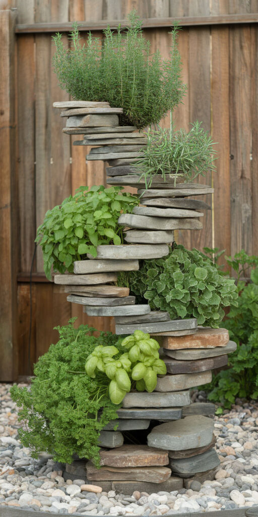 - Uses a raised spiral structure to grow different herbs at various heights.