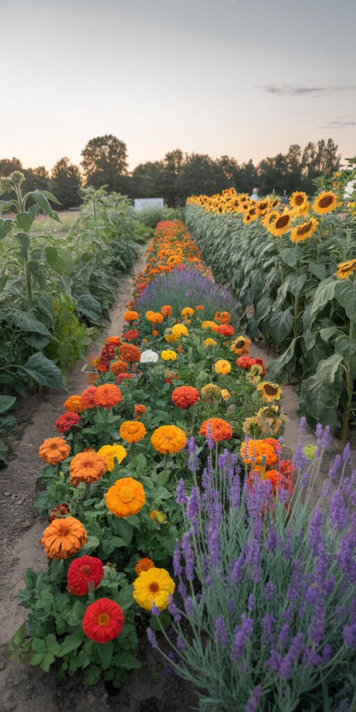 - Example: Tall crops like sunflowers at the back, medium plants like tomatoes in the middle, and herbs in the front.