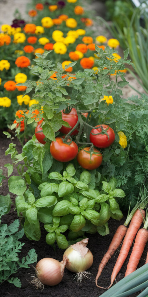 - Example: Tomatoes in the center, surrounded by lettuce, then a border of marigolds.