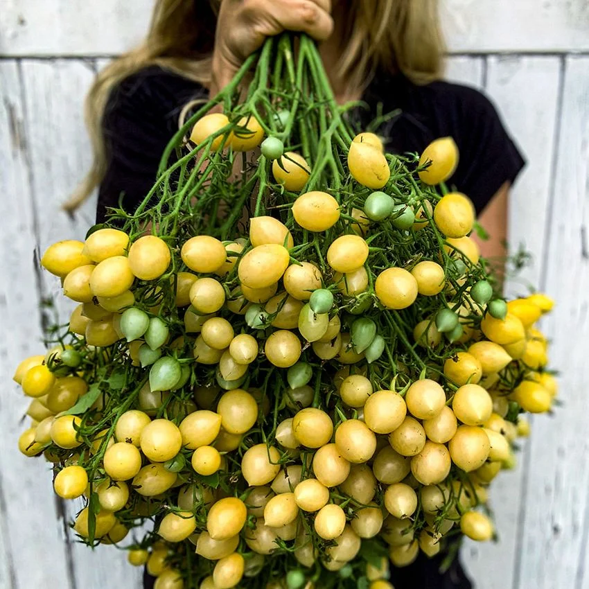 It really does live up to the name. Pale yellow cherries grow in huge clusterssometimes over 100 per truss. Mild flavor, but crazy yields.