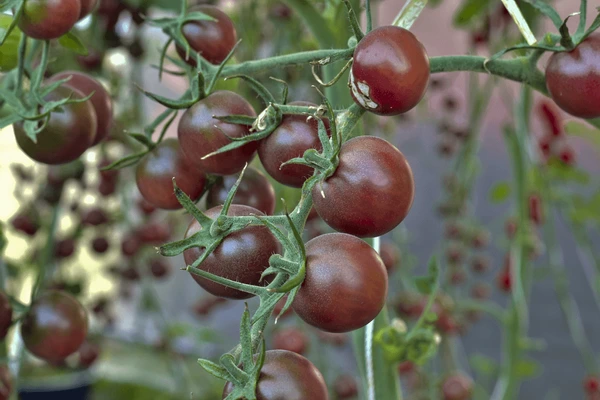 A true dwarf cherry tomato that only grows about 1218 inches tall. Perfect for containers or small balconies. Cute as heck, with decent flavor too.