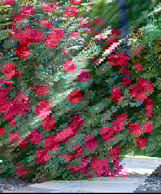 The fragrance of smooth series roses is fruity and the flowers grow in cerise red color. This thornless cultivar is disease-resistant and hardy, producing a small cluster of flowers.