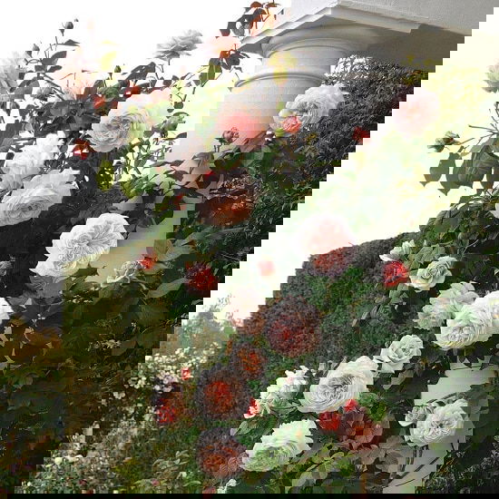 Height: 8-10 feetRoses from the Leander family offers large flowers in the shade of apricot to yellow and pink, with a mild fruity fragrance. You can grow this thornless cultivar in partial sun in loamy soil with a pH of 5.5-7.