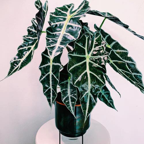 Also known as the kris plant, it has glossy, upright, V-shaped, deeply lobed foliage with wavy edges and large silver-white veins. Alocasia amazonica is a hybrid variety and almost looks the same as this plant.