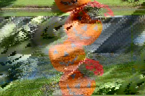 Make a funny-looking topsy turvy pumpkin flower tower to showcase your flowers. Watch the tutorial video on Youtube!