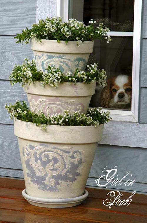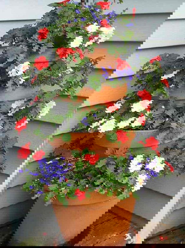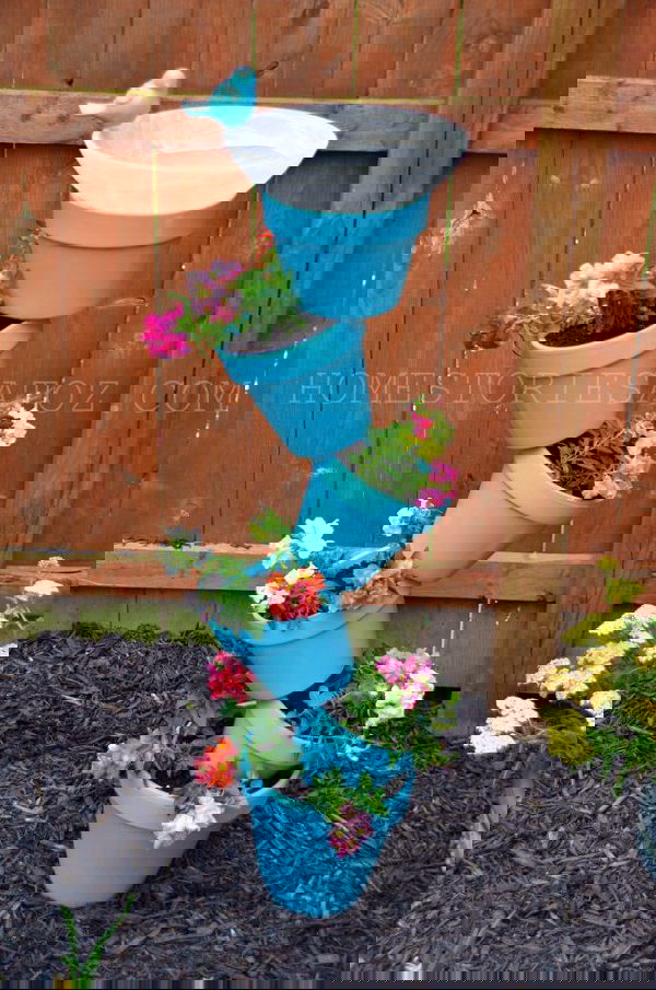 19. Stacked Pots Flower Tower