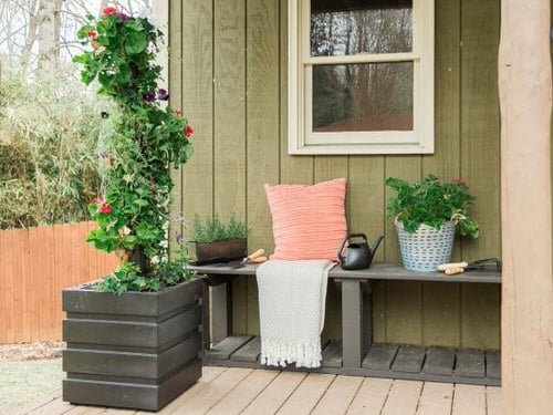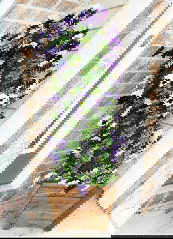 Create a stunning colorful flower tower to decorate your front porch or a balcony. See the tutorial post and video to learn more!