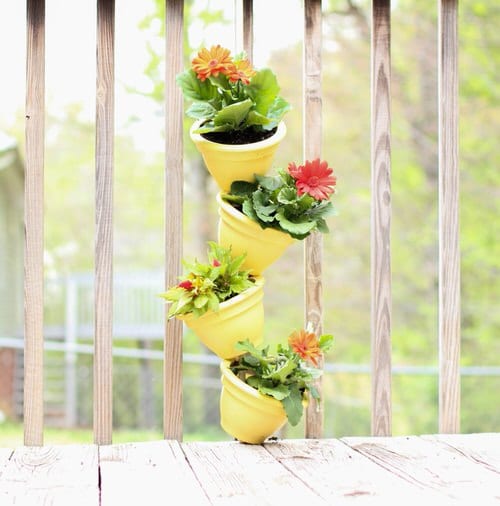 This is great for patios and balconies where you can easily make a flower tower using little yellow pots.