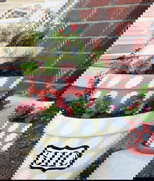 12. Polka Dot Planter Flower Tower