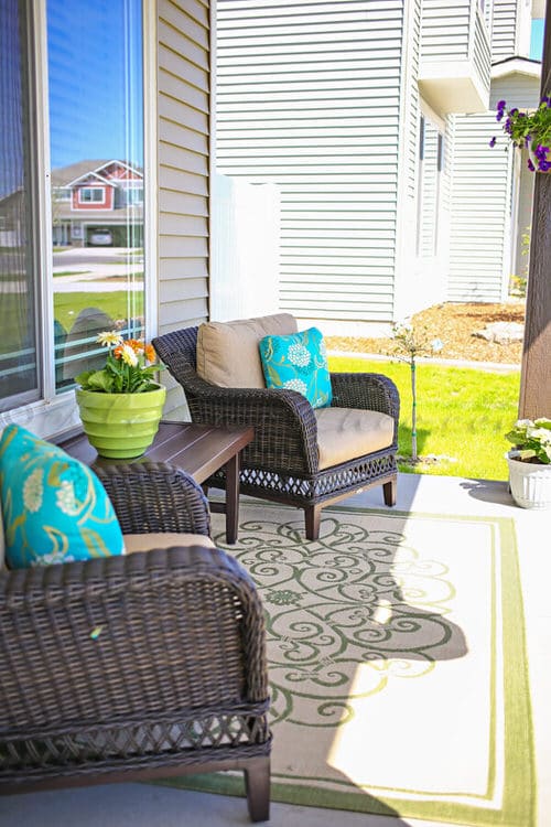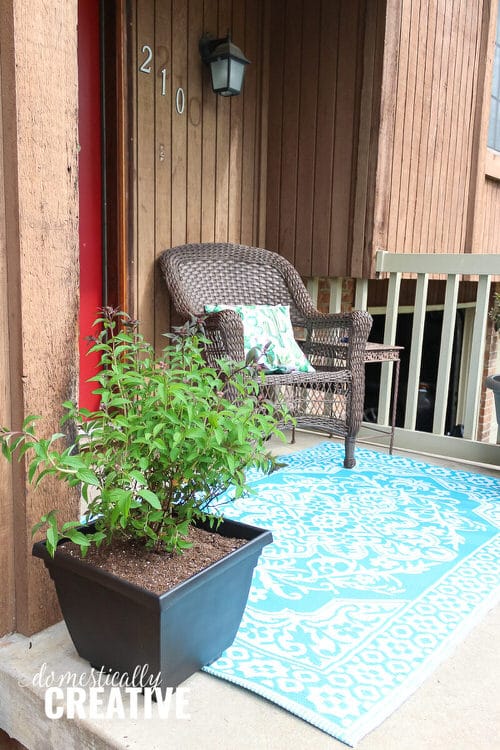 If you have a small patio, then you can simply keep a chair with a pot and a rug to add a sweet appeal.