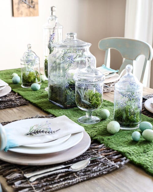 6. Apothecary Jar Terrarium Easter Centerpiece