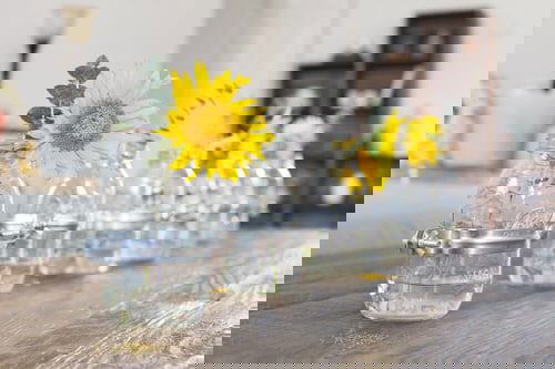 Glass flower vases of different shapes and sizes are perfect to use as table centerpieces.