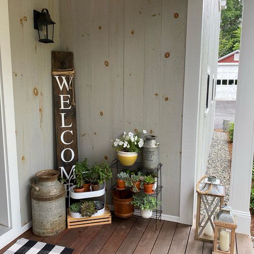 A sun-kissed porch with stairs is going to be a great spot to grow colorful succulents!