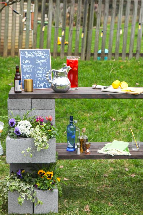 Make an easy-access outdoor bar using just the cinder blocks and some other tools. Details are here.