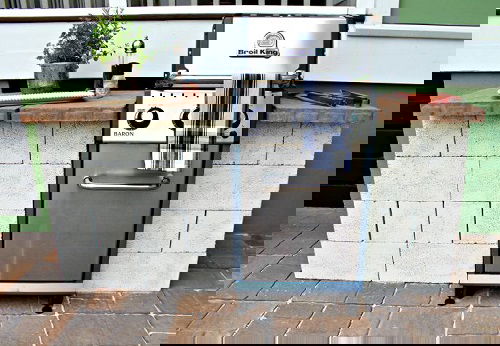 Stack cinder blocks to create a grill station and top with pavers and paint to make it look more stylish! Follow the DIY here.