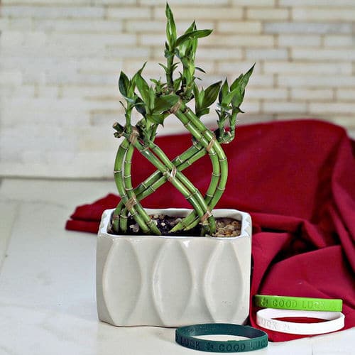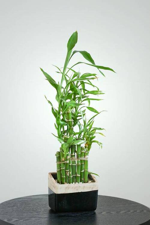 This designer lucky bamboo is sure to attract many eyeballs to the table!