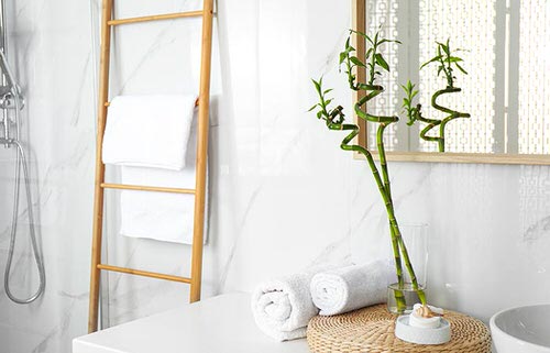 A braided bamboo right by the washbasin is a great plant idea in a bathroom!
