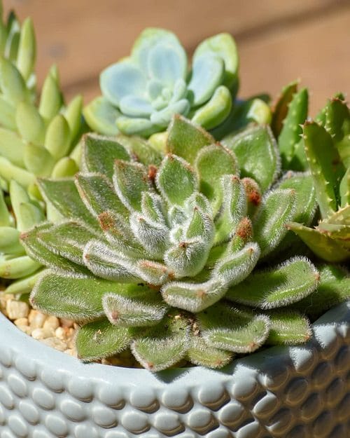 The species is amongst the most popular Echeveria hybrid varieties. It can be identified by its green-fuzzy rosette that looks quite astonishing!