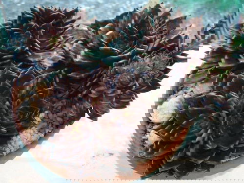 It has a dark purple-brown rosette formed by triangular leaves. During fall and winter, the plant produces stunning dark red flowers.