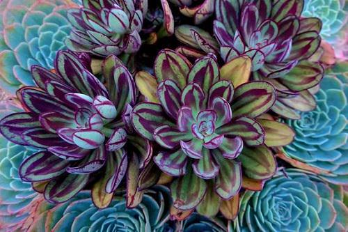 The green, pink, and red colored triangular leaves form a perfect rosette. The color of the rosette keeps getting darker with the exposure of sunlight.