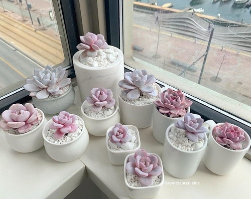 One of the prettiest pink succulents, this echeveria variety is popular for its decorative look.