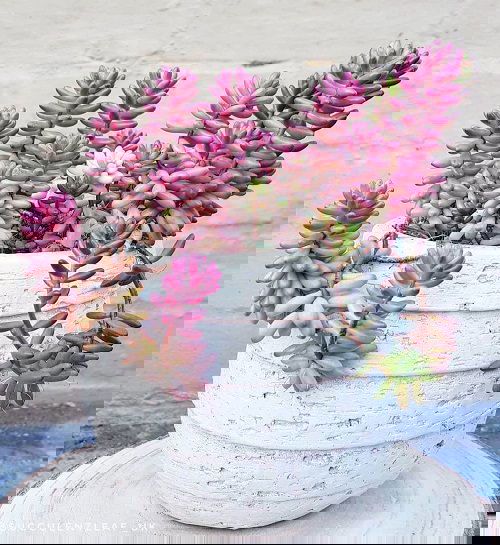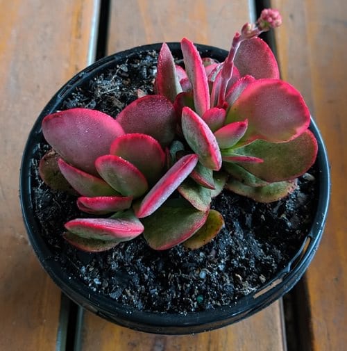 It forms a rosette of triangular foliage in pink, green, and red shade. The color deepens with exposure to sunlight. It is one of the most beautiful pink succulents!