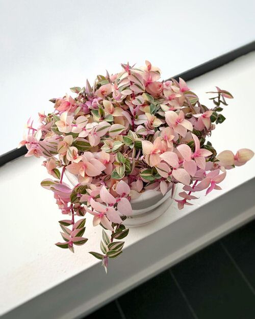 Pink Lady is a low-growing semi-succulent with stems filled with small, round waxy leaves that vary in shades from green striped, pink, and cream with burgundy undersides of the leaf.