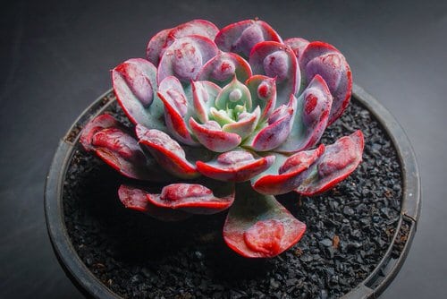 It forms a solitary green rosette that turns purple and pink under direct sunlight. It is quite popular in decorations due to its eye-catching shades.