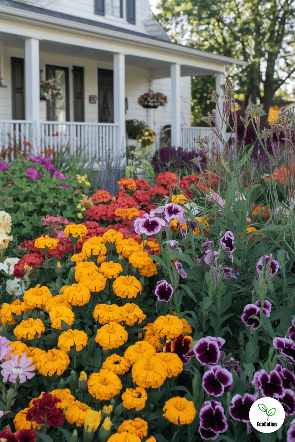 Add a burst of seasonal color to your front yard with sun-loving annual flowers like marigolds, petunias, and zinnias. These flowers create an ever-changing, vibrant display that thrives in the sun. Use them in flower beds or hanging baskets to bring color and cheer to your front yard throughout the year.