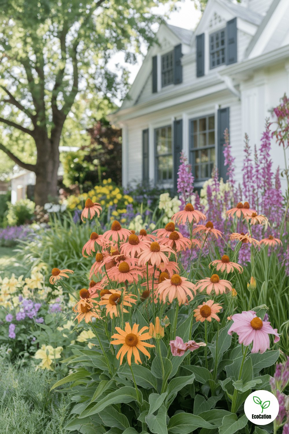 Fill your front yard with a variety of sun-loving perennials like coneflowers, black-eyed Susans, and daylilies. These plants burst with color and texture, offering seasonal beauty that thrives in full sunlight. Use them to create vibrant flower beds that require minimal care and bring your garden to life year-round.