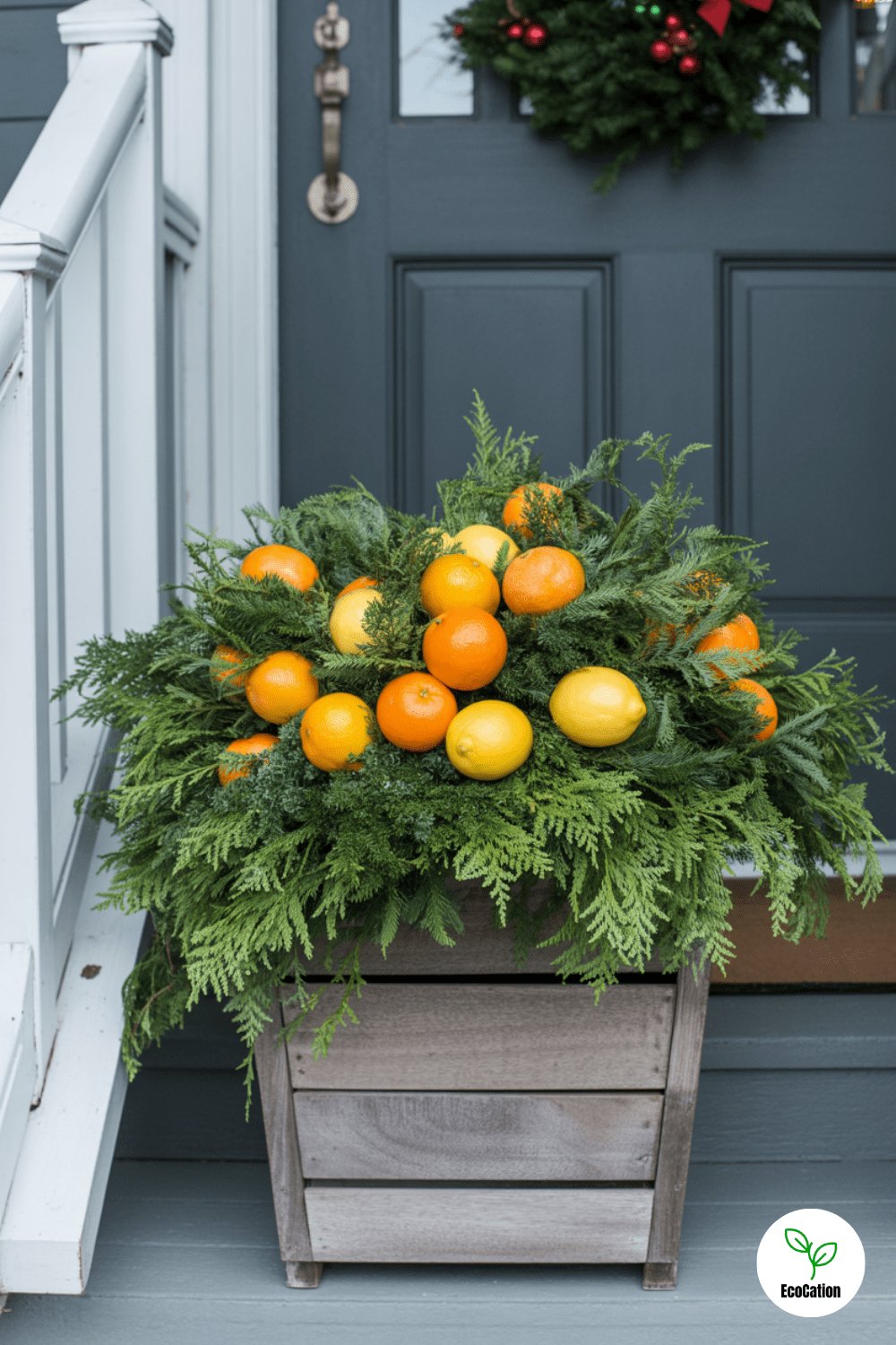 Incorporate fresh cedar boughs with faux or real oranges and lemons for a bright, unexpected pop of color. The natural elements create a lovely contrast and a fresh, inviting look.