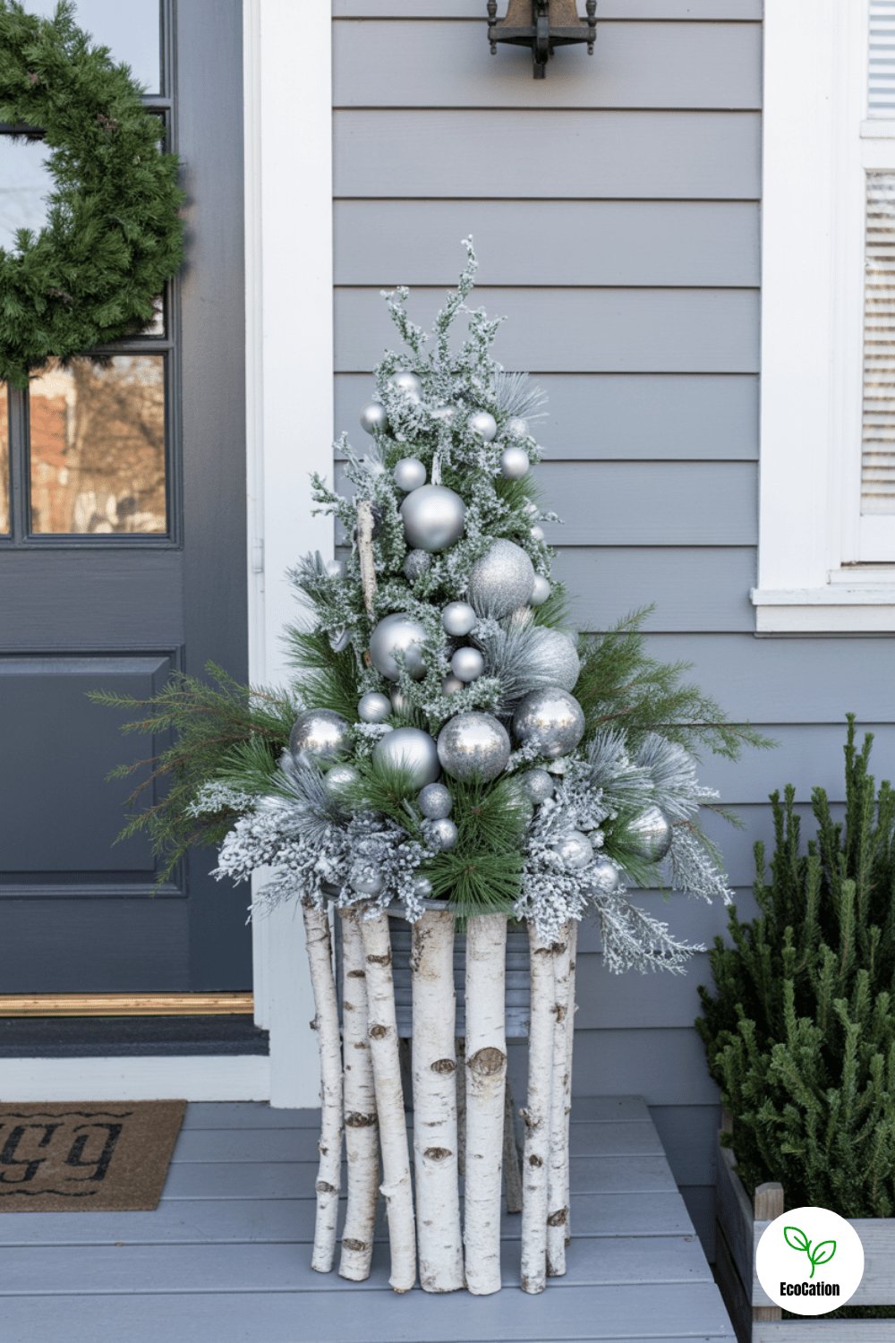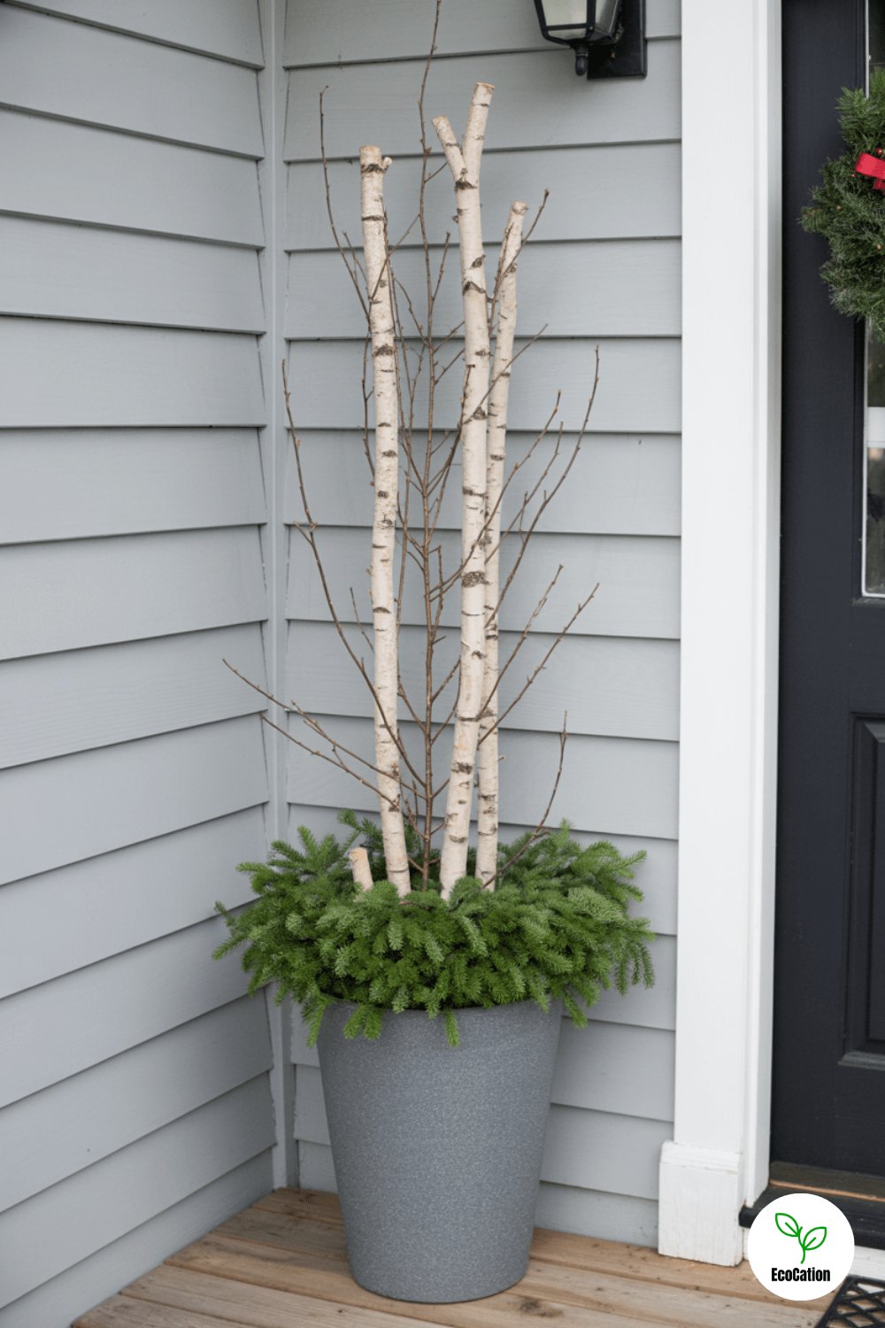 For confined areas, design your Christmas planter with vertical height from skinny birch branches in a tall, slender pot. This maximizes visual impact without taking up too much space.