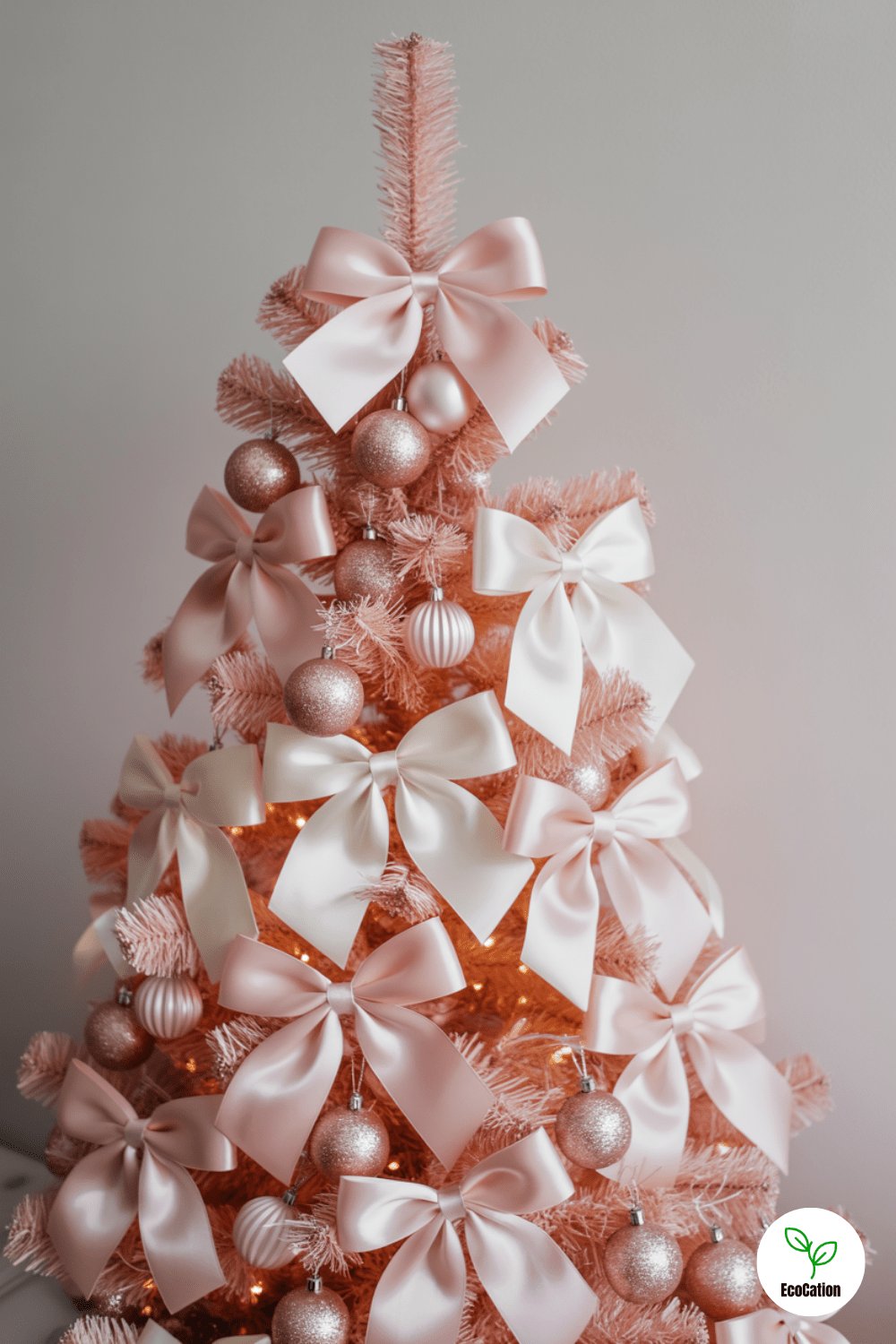 Create a beautiful and tranquil focal point in a nursery or child s room with delicate, soft bows. Choose pale rose and creamy white satin Christmas tree bows, paired with gentle ornaments in rose gold or pearl. Keep the bows small and uniform for a serene, elegant touch.