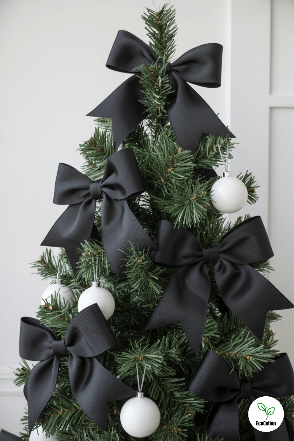 For a sophisticated, clean aesthetic, a black bow Christmas tree is the ultimate statement in contemporary design. Use matte black grosgrain ribbon for your bows and pair them with simple white or clear ornaments for a sharp, graphic contrast. Keep the decorating sparse and clean less is definitely more for this chic style.