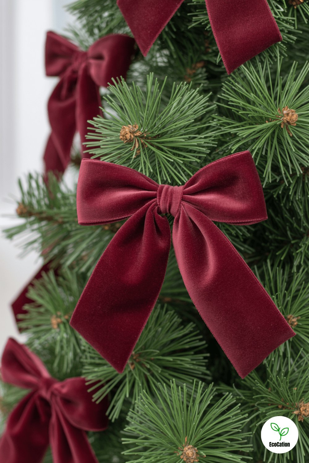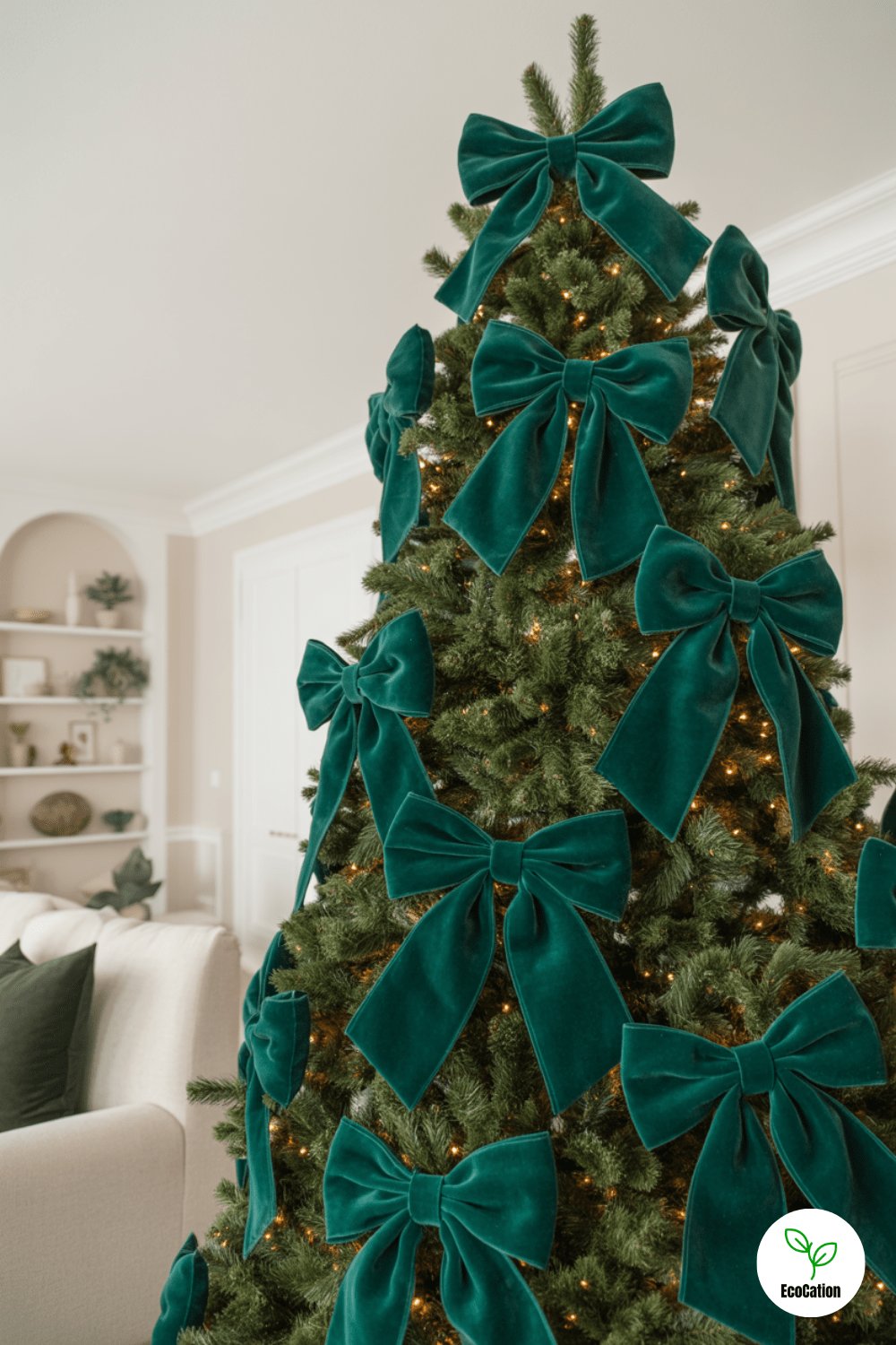 For those who believe bigger is better, dramatic, oversized bows scattered across the tree create an opulent and unforgettable centerpiece. Choose a deep, saturated color like emerald green or navy in a lush velvet fabric to maximize the visual impact. Place these big bow Christmas tree accents on the thicker, outer branches so they can truly stand out.