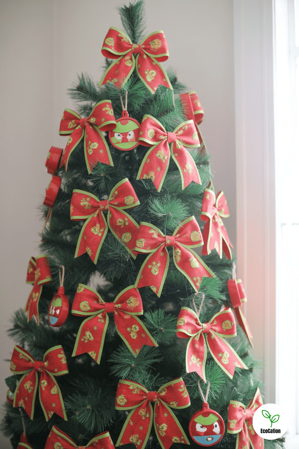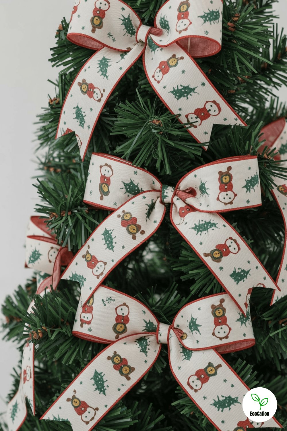Add a dose of fun and personality to your tree by using patterned ribbons that feature unique, festive prints. Look for ribbons with tiny snowmen, reindeer, or whimsical holiday words, and craft your Christmas tree bows to showcase the pattern. Use these novelty bows sparingly alongside solid colors to avoid overwhelming the eye.