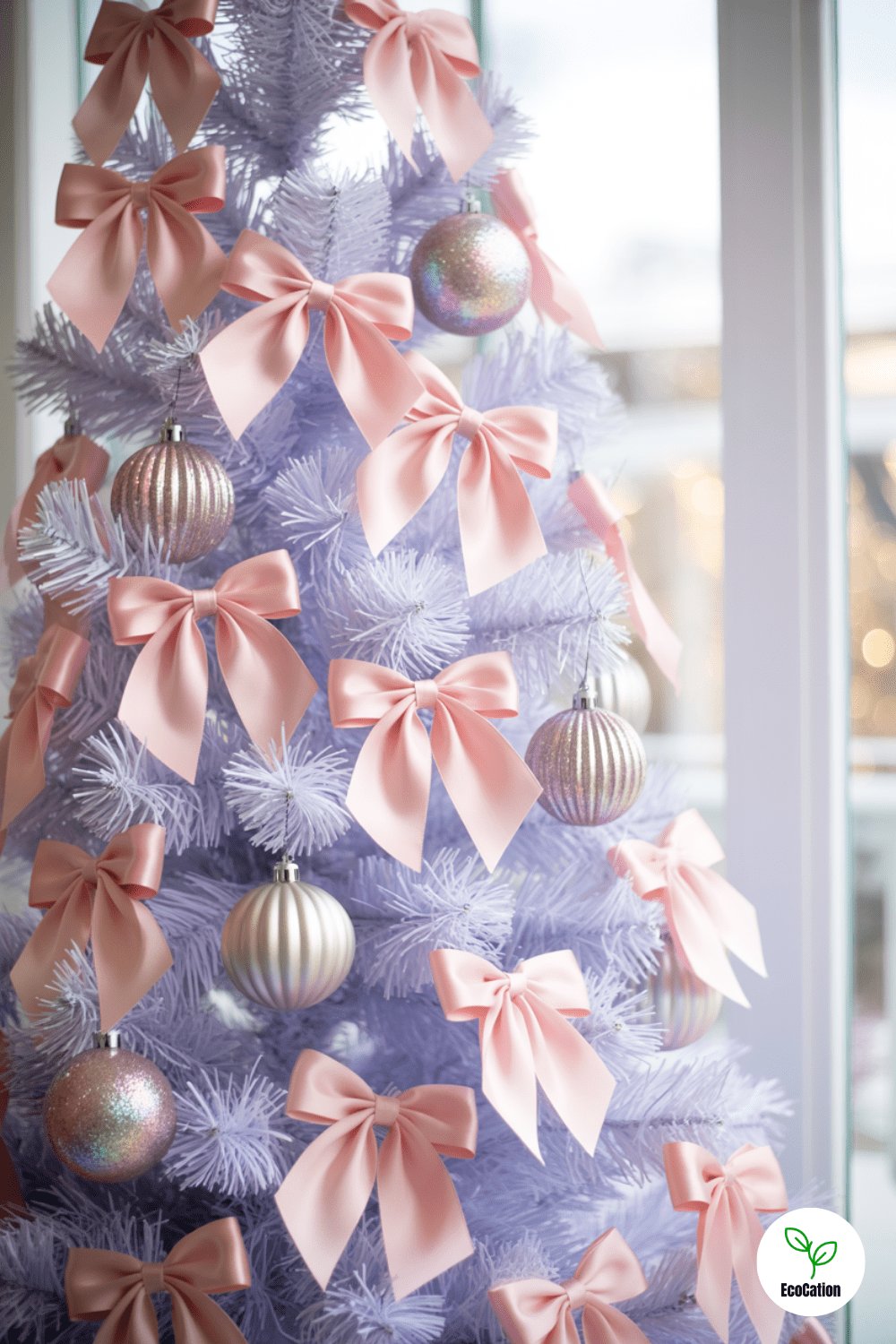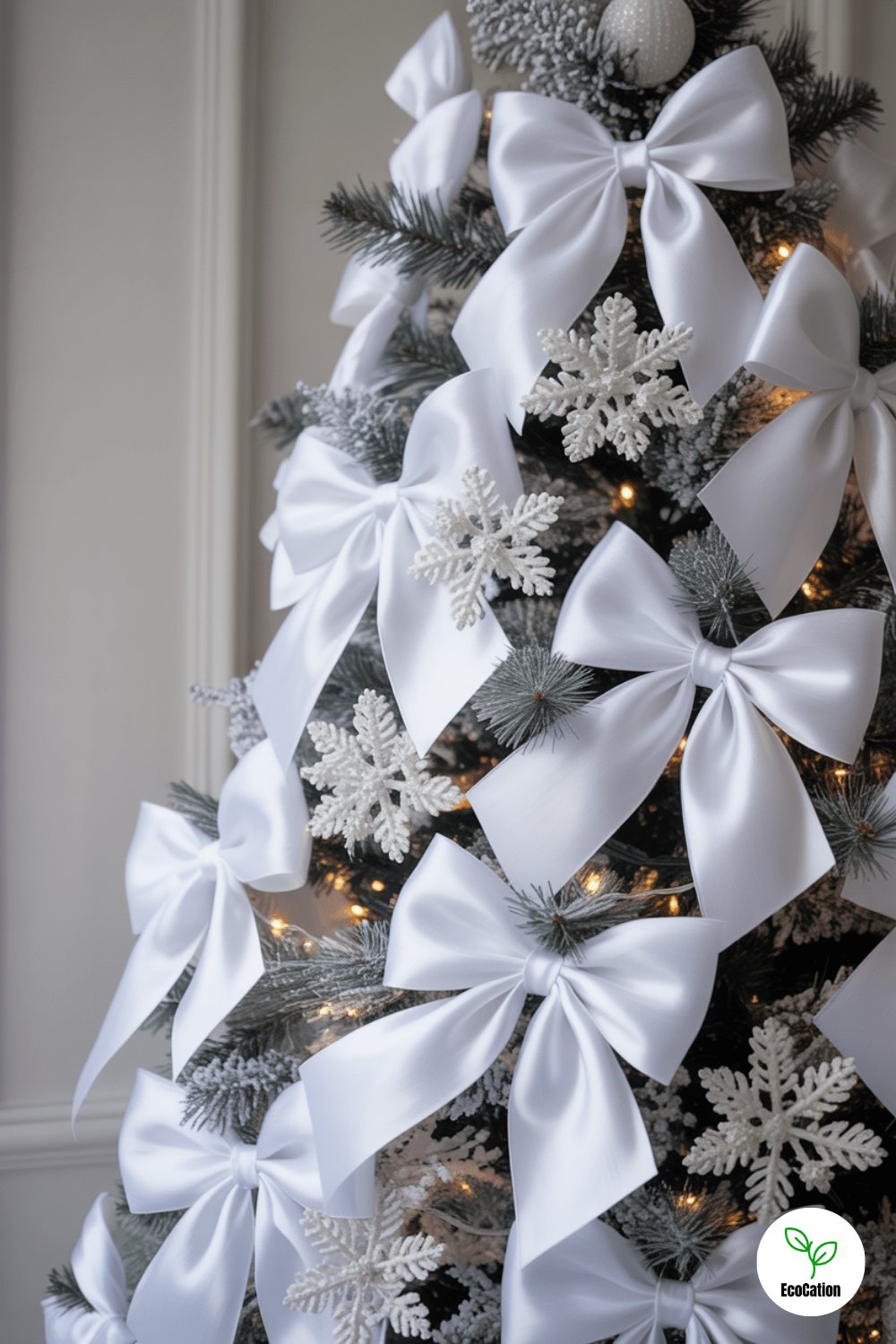Nothing says chic and glamorous quite like a tree dressed in pure white ribbon and cool-toned lights. Use a mix of crisp white satin and sheer organza ribbons for your Christmas tree bows to add subtle texture and depth. For a luxurious shimmer, weave silver or icy blue garland throughout the branches alongside your beautiful bows.
