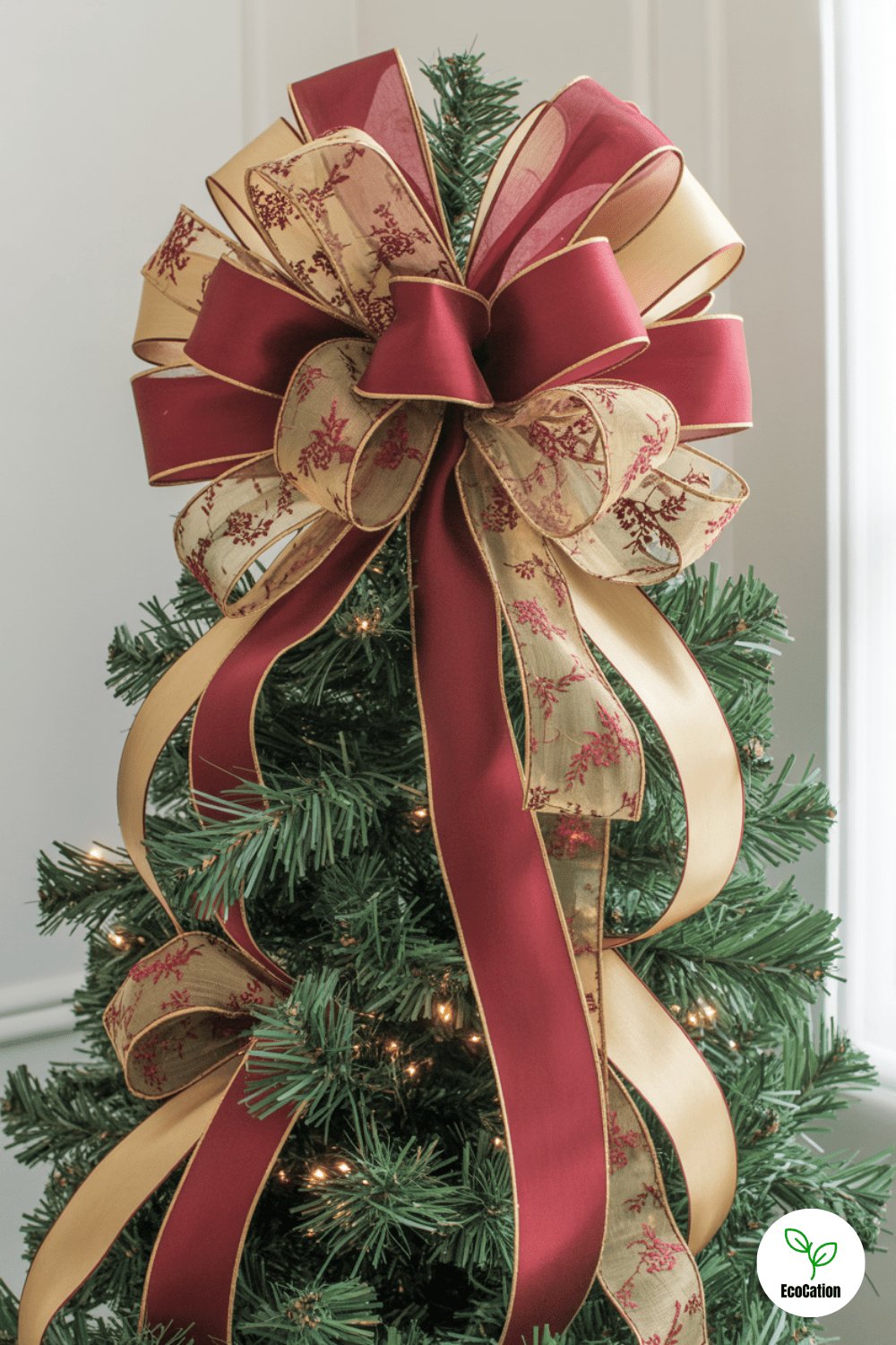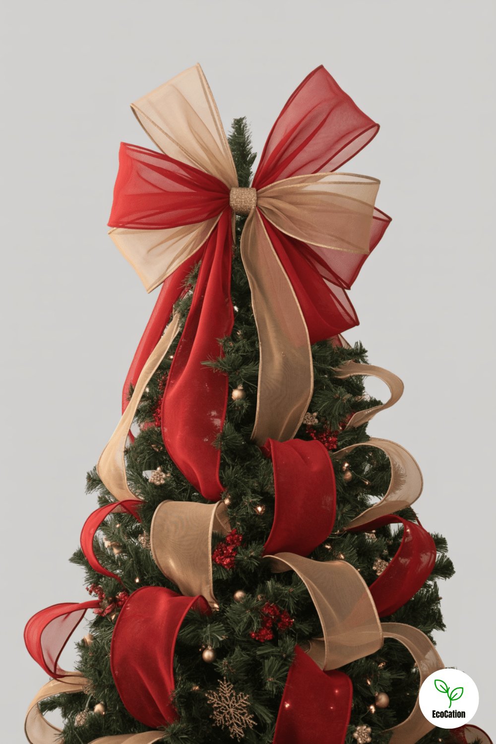 Give your tree the dramatic crown it deserves by replacing a traditional star or angel with a spectacular, oversized multi-layered fabric bow. Choose two different textures, like solid velvet and sheer organza, and layer them together to create a voluminous, professional-looking topper. Make sure the color perfectly complements the rest of your bow scheme.