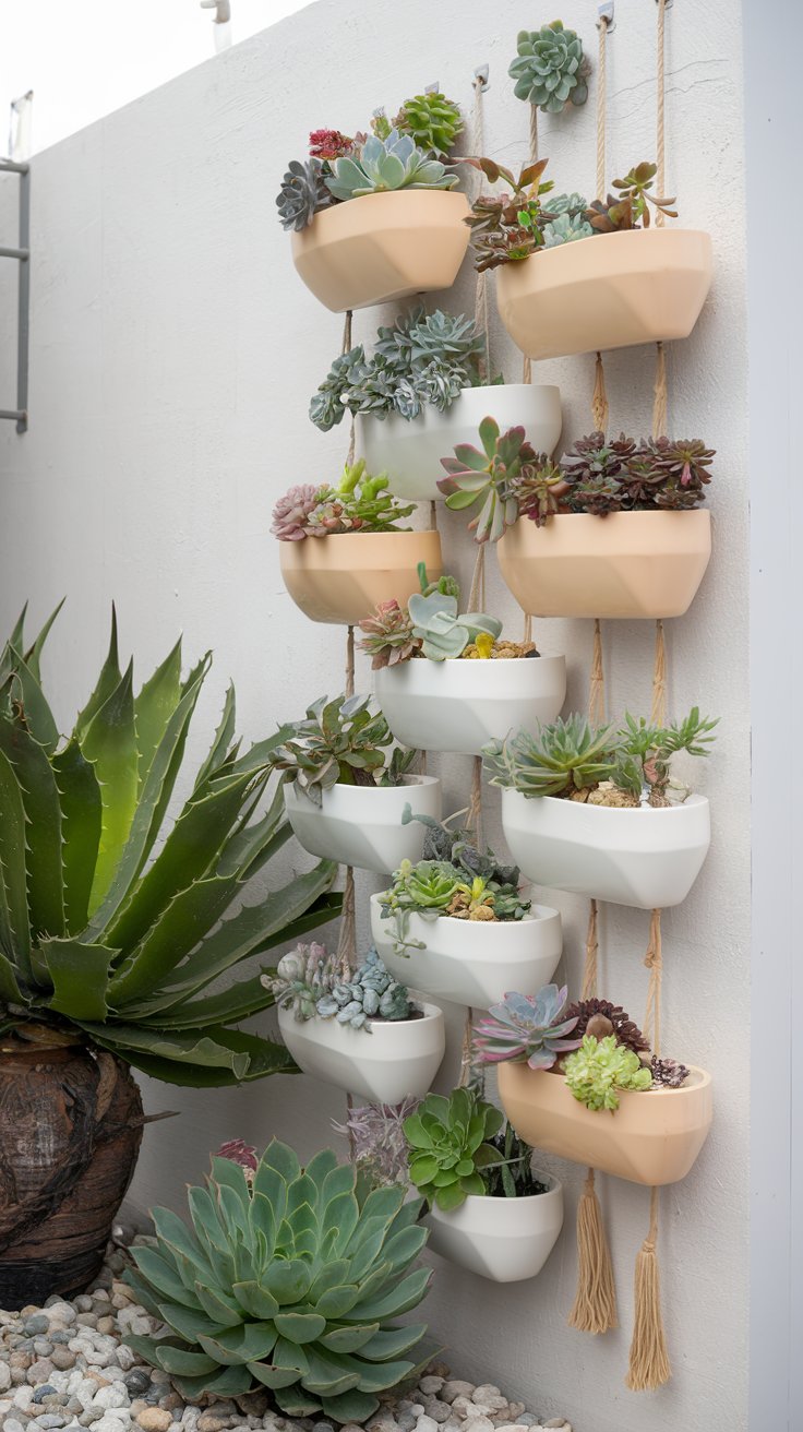 Incorporate a vertical wall with hanging succulent planters to add a modern twist to your desert garden. Use lightweight planters and hardy succulents like echeveria or sedum. This idea is perfect for maximizing space while creating a striking visual feature.