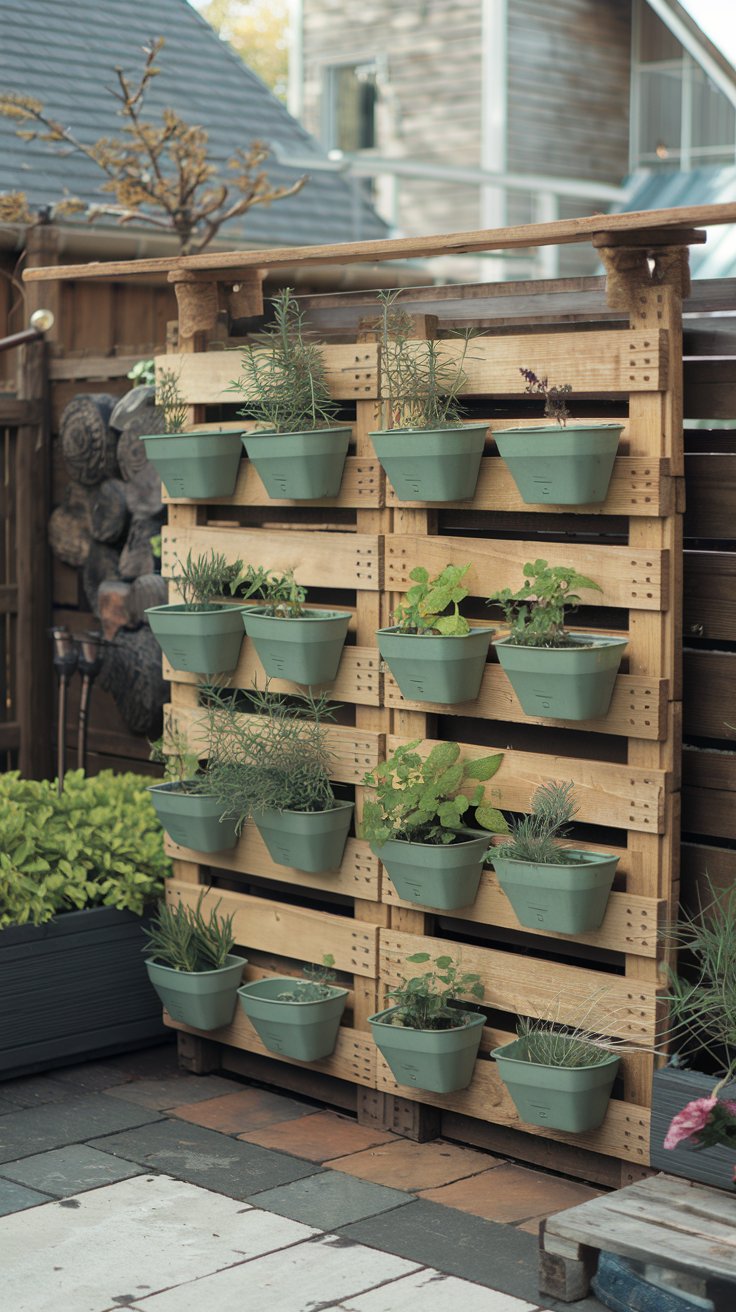 Repurpose an old wooden pallet into a vertical herb garden that combines functionality with charm. Attach small pots of rosemary, thyme, and mint to the pallet, creating a green feature wall for your backyard. For added character, use chalkboard paint to label each herb, making it easy to identify and adding a rustic touch. Position the pallet in a sunny spot to encourage robust growth and keep your kitchen stocked with fresh ingredients.