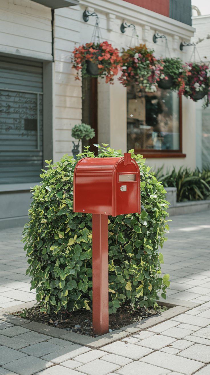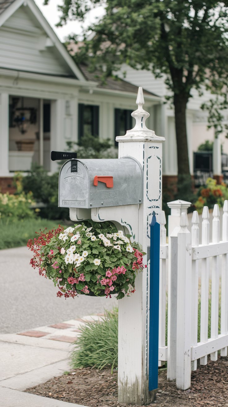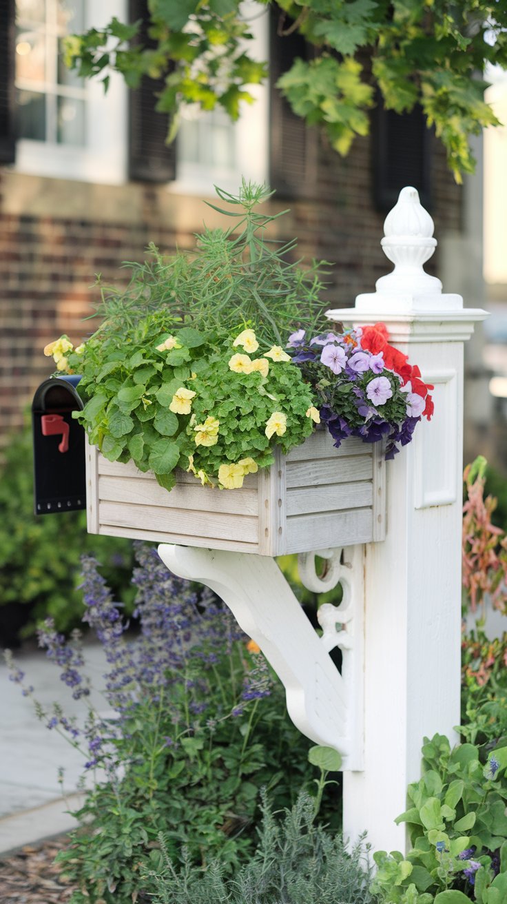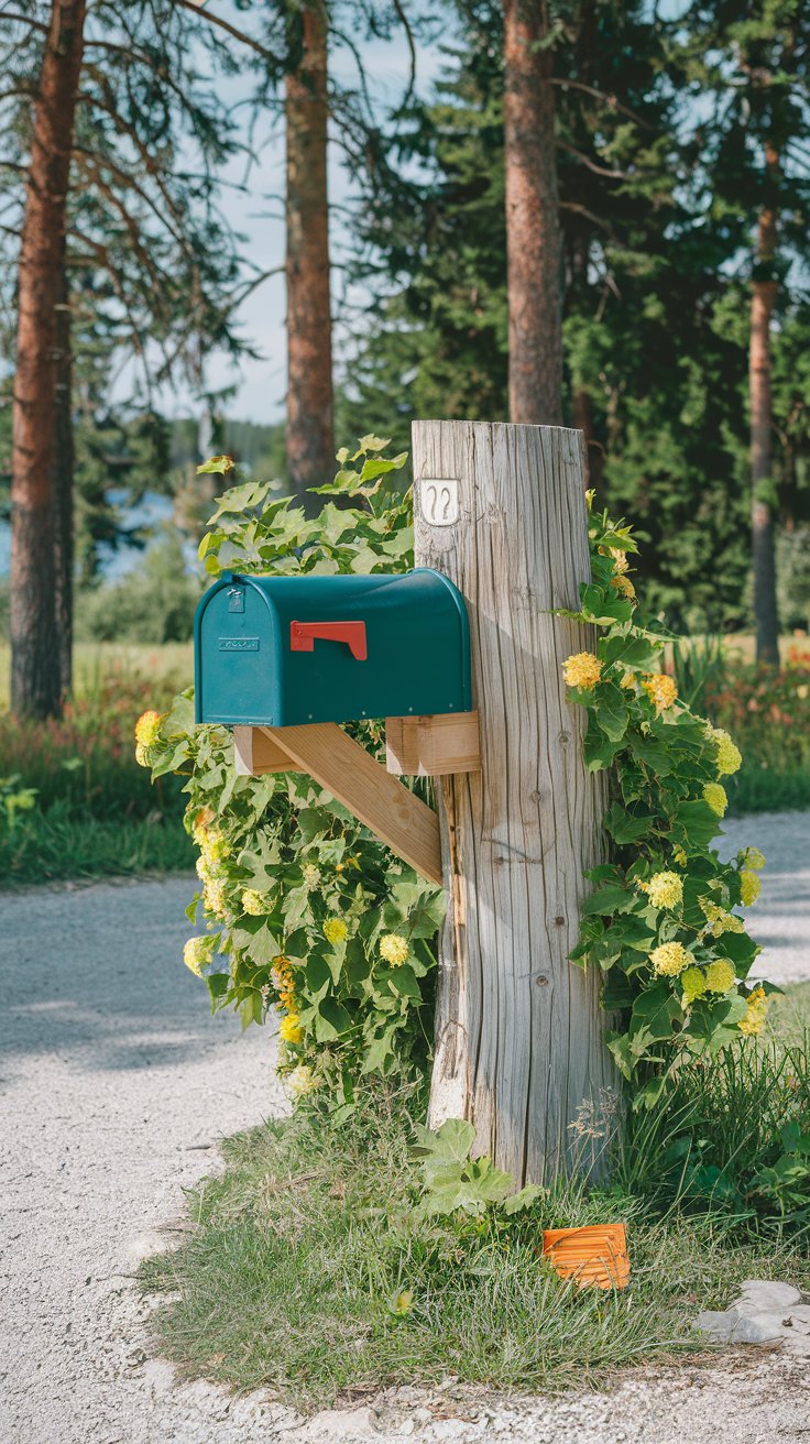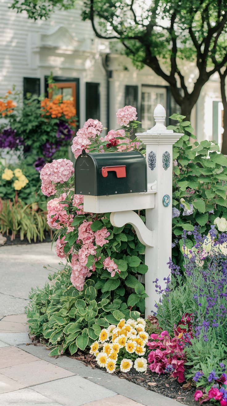 Surround a classic mailbox with vibrant flowers and greenery for a charming garden look. Choose perennials for low maintenance and add a small border of decorative stones to keep the soil tidy.