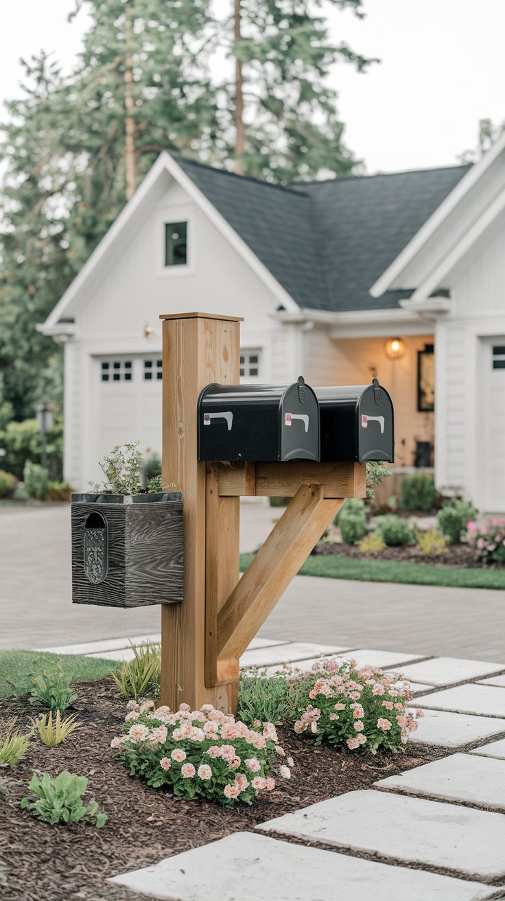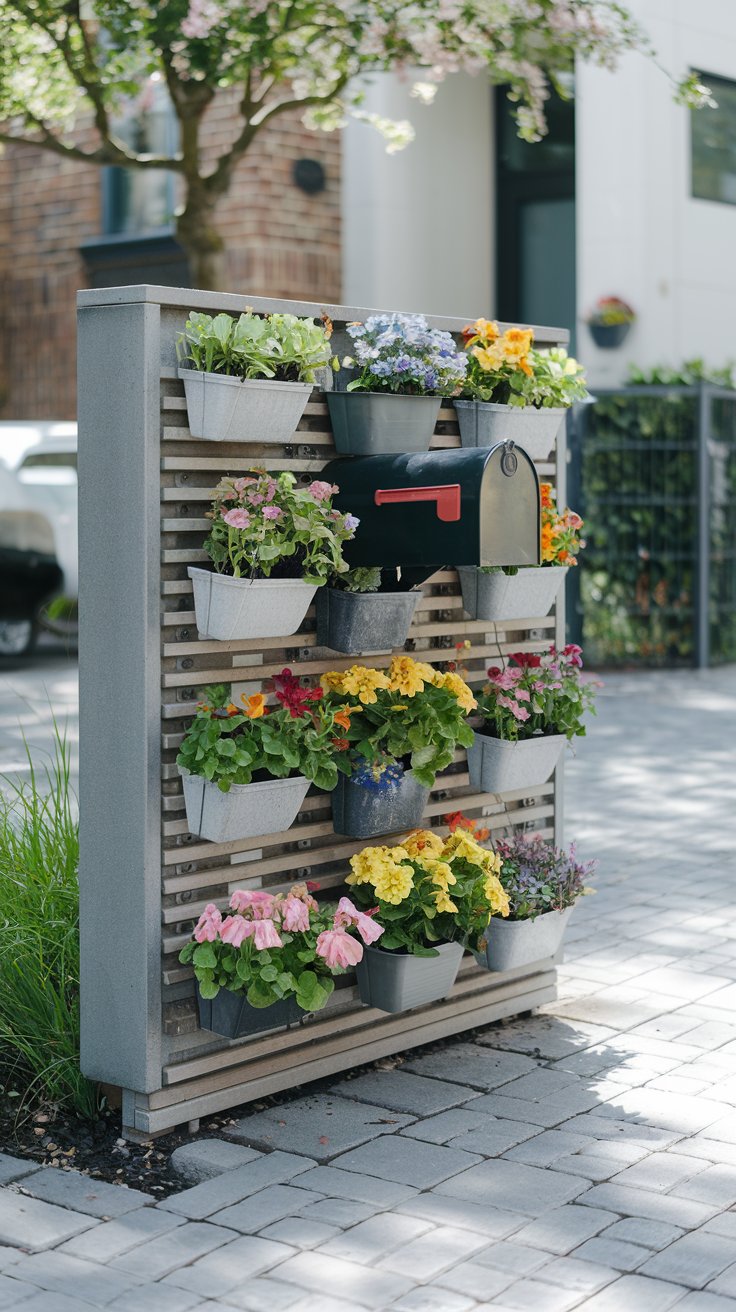 Incorporate your mailbox into a vertical garden with potted plants and colorful blooms. Use climbing plants for a lush effect and choose weatherproof pots that complement your home s palette.