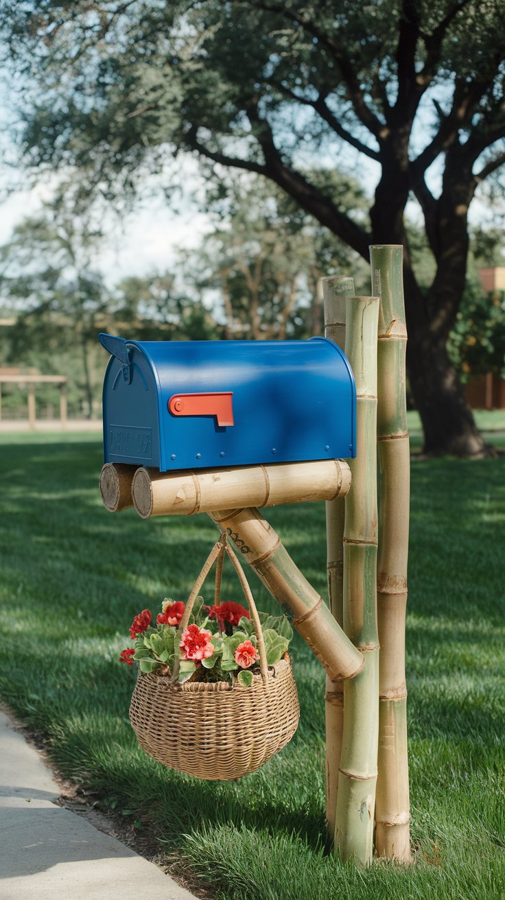 Go green with a mailbox made from recycled materials, mounted on a bamboo post. Choose durable, treated bamboo and add eco-friendly paint for a fresh, sustainable aesthetic.