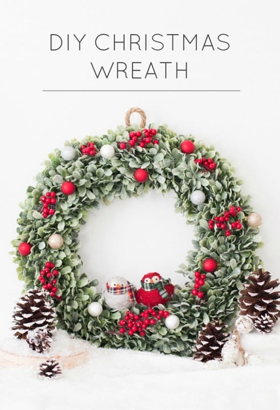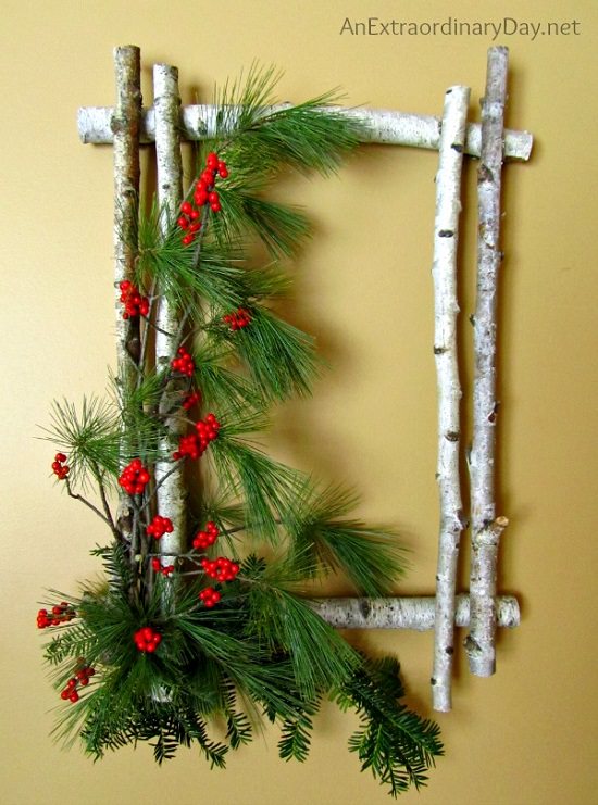 Try this Christmas wreath idea for a rustic appeal. The tutorial is here.