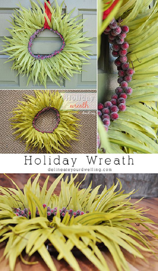You ll definitely love this classic DIY wreath idea made of faux branches of pine and berry. The instructions are here.