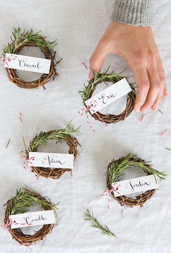 Complete your dinner feast setting with these adorable mini wreath place cards. One of the most charming DIY Christmas Wreath Ideas in this list. Find it here.