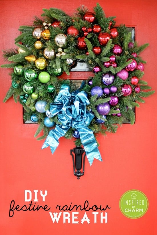 Glue vibrant Christmas ornaments to a wreath and finish it off with a bow. This can be a great companion to your Christmas tree as it s for this blogger.