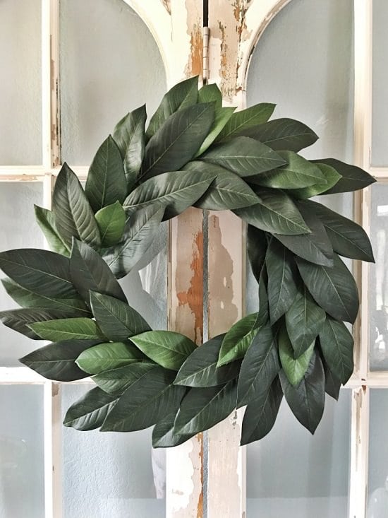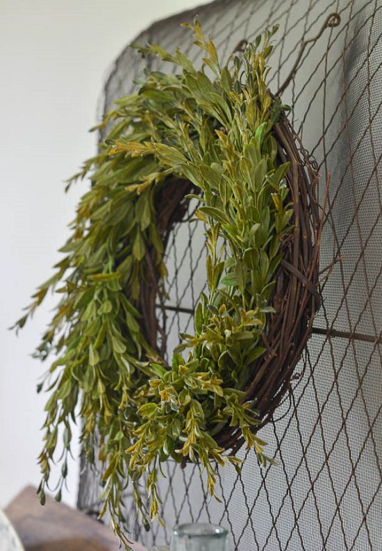 This project is all about tucking faux boxwood to a grapevine wreath using floral wire. Easy and simple! The tutorial is here.