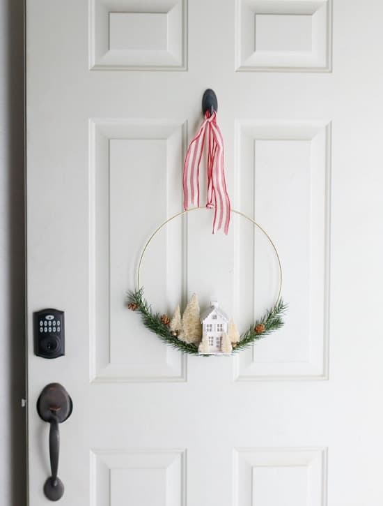 Convert a metal wreath ring into a fascinating Christmas wreath to decorate your front door. The list of supplies and the tutorial is here.