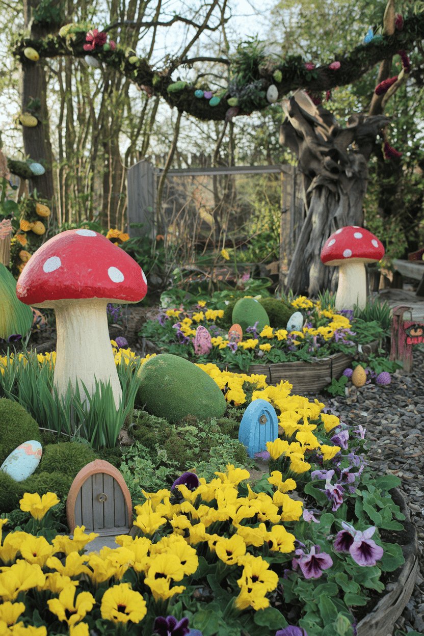 Turn your garden into a fairytale Easter wonderland with oversized toadstools, moss-covered Easter eggs, and tiny fairy doors nestled among colorful flower beds. Incorporate miniature garden gnomes and soft twinkle lights to enhance the magical feel. Use real moss to add a natural touch and create depth in your display.